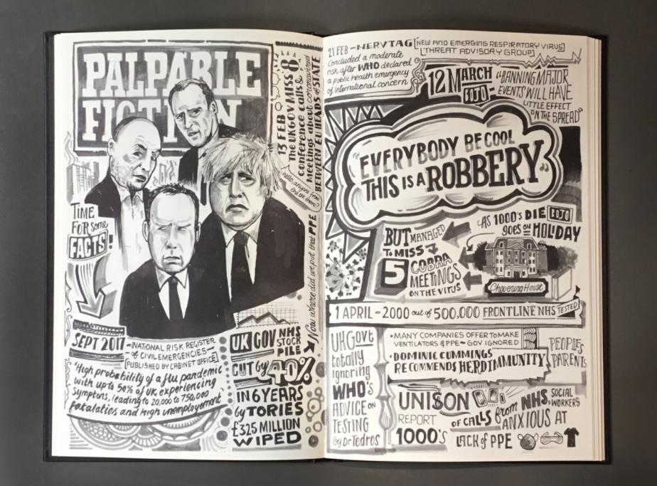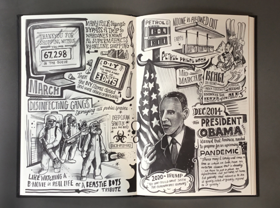 일러스트레이터 빅리의 최근 작품은 손으로 그린 대규모 벽화 였지만, 그는 봉쇄 기간 동안 생활을 다루는 방법으로 소규모 책을 만들었습니다.