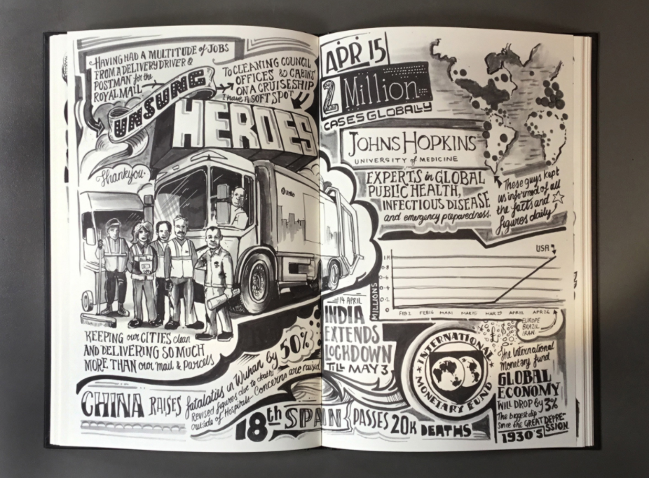 일기는 또한 통계가 항상 할 수있는 것은 아닌 방식으로 위기의 측면을 시각화하는 데 도움이되었습니다. 그는“영국에서 하루에 사망 한 사망자 수를 맥락에 맞추기 위해 책에 넣어야했던 부분이있습니다”고 말했습니다.