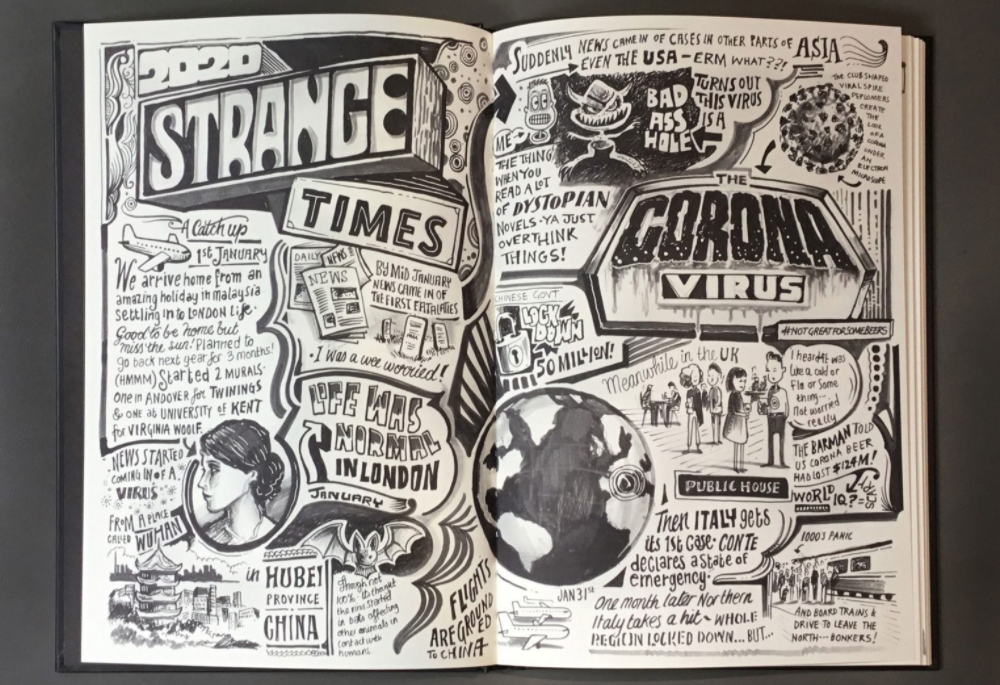 런던의 일러스트 레이터 빅 리 (Vic Lee) 는 자신의 코로나 바이러스 전염병 경험을 그래픽 다이어리에 기록했으며, 온라인으로 공유 한 후 수천 장을 판매했습니다.