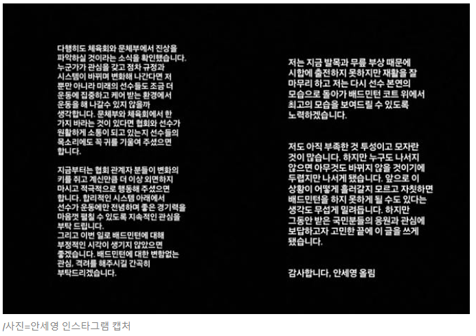 안세영 글 인스타그램에서 확인하기 ↓↓