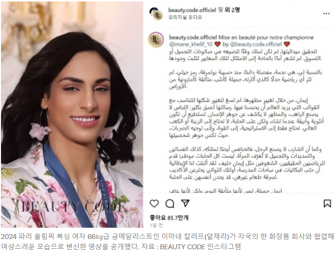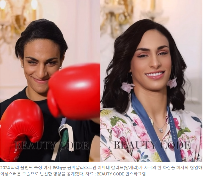이마네 칼리프는 2024 파리 올림픽 복싱 여자 66㎏급에서 금메달을 획득한 뒤, 자신의 소셜미디어(SNS)를 통해 변신한 모습을 공개했습니다. 그녀는 긴 머리를 풀고, 파마를 하며, 진한 색조화장과 함께 화려한 액세서리를 착용한 모습으로 등장했습니다. 이 영상은 그녀가 '여성스러운' 모습을 강조하며, 성별 논란을 일축하려는 의도로 보였습니다. 특히 이마네 칼리프는 이 영상을 통해 자신의 외모가 아닌, 내면의 힘을 강조하며 '여성다움'이 무엇인지에 대한 사회적 논쟁에 도전장을 내밀었습니다.