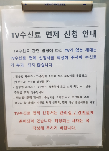 아파트에 거주 중이라면, 관리사무소를 통해 수신료 해지가 가능합니다. 관리사무소에서 'TV수상기 미소지 확인서'를 발급받아 한전에 통보하면, 해당 세대의 수신료가 해지됩니다. 이 방법은 특히 아파트 단지에서 TV가 없는 세대들이 함께 수신료를 해지하고자 할 때 유용합니다.