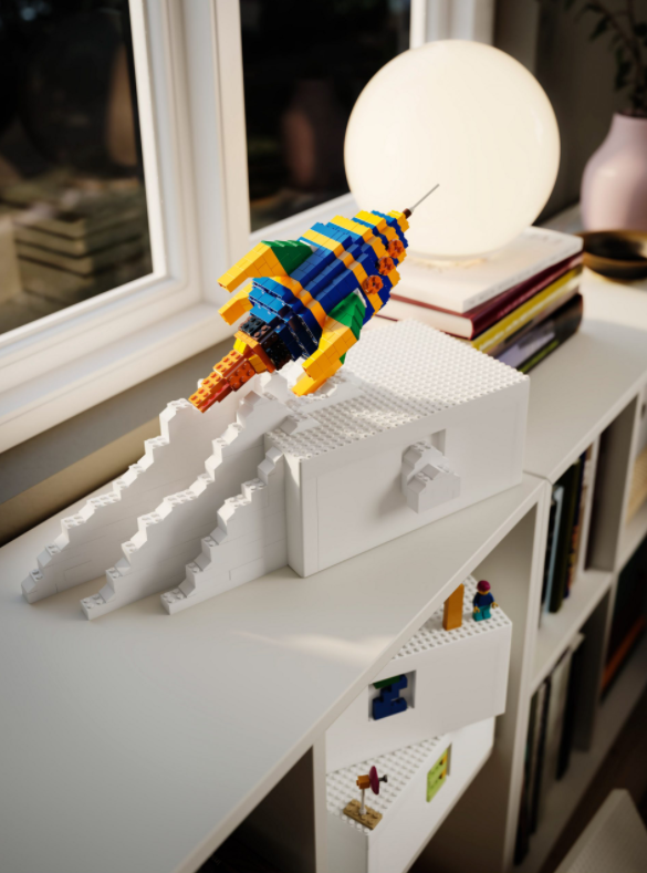 IKEA 와 레고 는 콜라보을 통해 수납상자인 Bygglek을 만들었습니다 .이것은 정리함을 스터드(레고장난감의 동그란 돌기)로 덮인 뚜껑이있는 장난감으로 바꿔 아이가 자신의 작품을 위에 두는 것을 목적으로하고 있습니다.