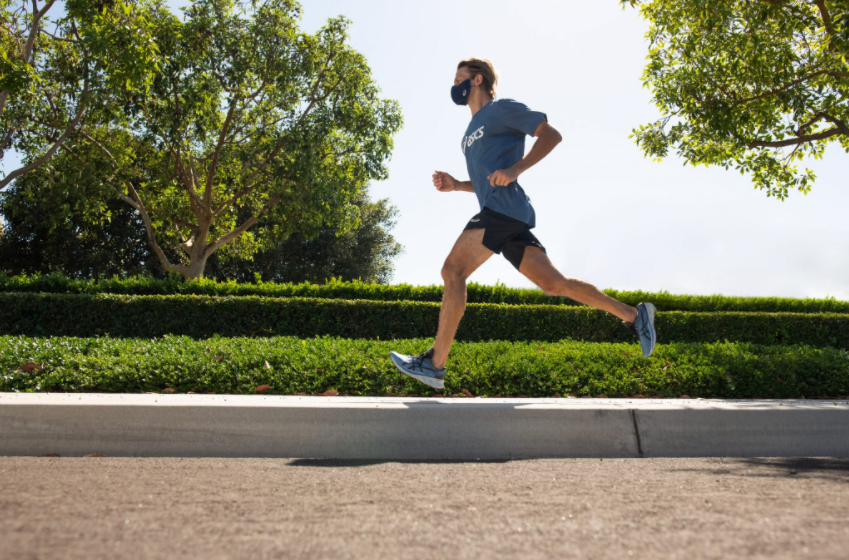 스포츠웨어 브랜드 ASICS는 사람들 이 코로나 바이러스 대유행 동안 운동하는 동안 마스크 를 착용 할 수 있도록 Runners Face Cover에 통풍구를 설계했습니다 .