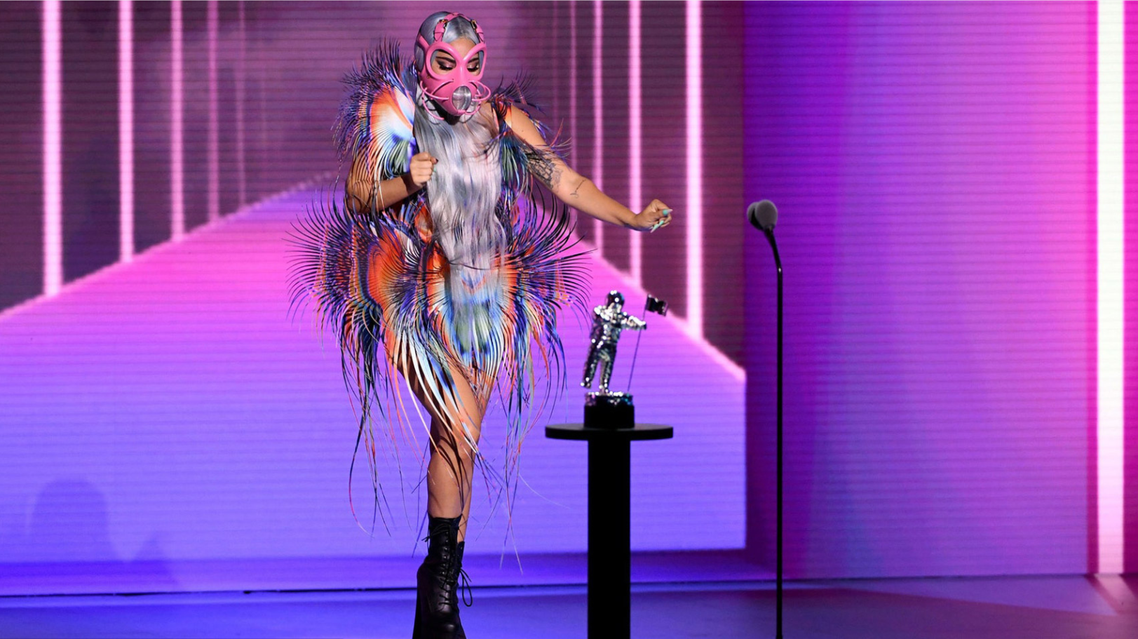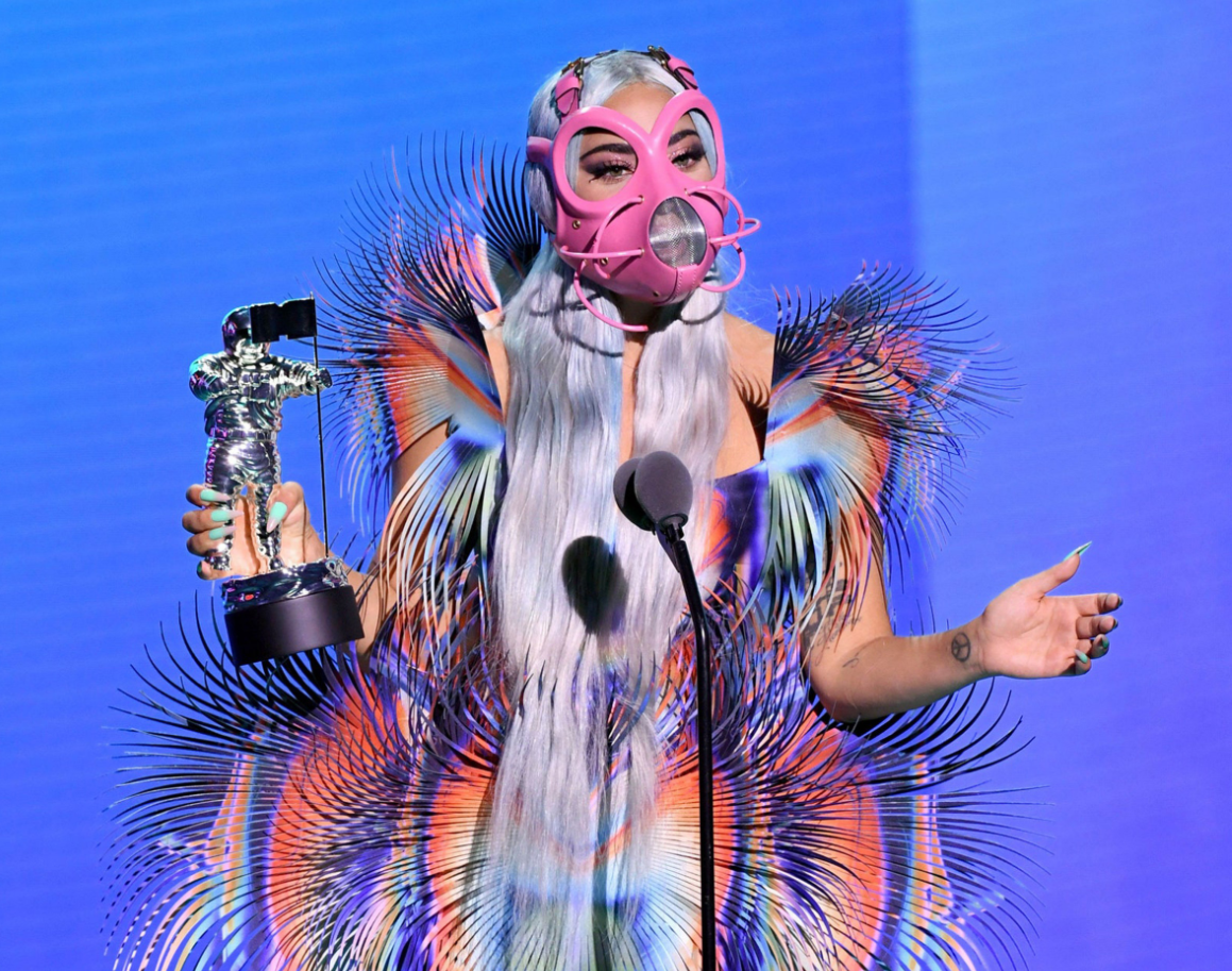 VMAs 2020에서 "otherworldly"Iris van Herpen 드레스와 Lady Gaga 팀 핑크 페이스 마스크