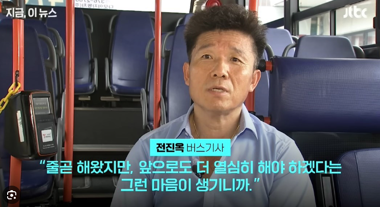 전진옥 기사님은 “(임산부가 버스에서 내리기 전) 앞으로 막 나와서 고맙다고 해서 내가 ‘죄송하다’고 그랬다”고 전하며, “내가 먼저 자리를 마련해줘야 하는데 너무 늦었다”라고 말했습니다. 그는 이어서 "줄곧 해왔지만 앞으로도 더 열심히 해야 하겠다는 그런 마음이 생겼다"고 다짐했습니다.