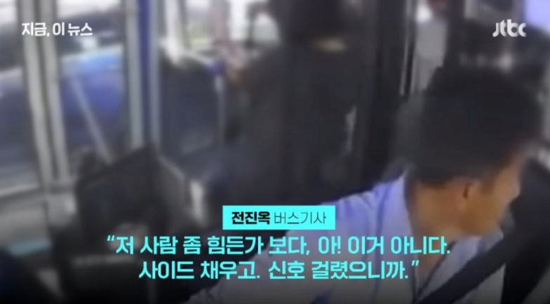 전진옥 기사님은 "노선에 노약자가 많다 보니까 세심하게 좀 보는 편"이라며, 임산부가 뒤를 돌아보는 모습을 보고 "저 사람 좀 힘든가 보다"라는 생각이 들었다고 말했습니다. 그 순간 그는 "아, 이건 아니다"라고 느끼며, 신호가 걸린 틈을 타 사이드를 채우고 자리에 일어섰습니다.