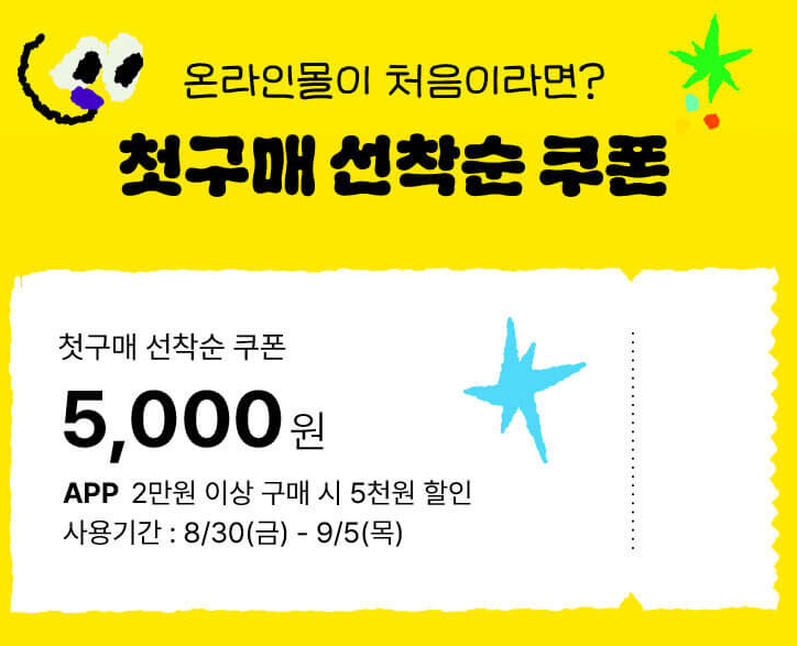 이 외에도 올리브영 온라인몰에서 첫 구매를 하시는 고객에게는 5,000원 할인을 제공하는 첫 구매 선착순 쿠폰이 발급됩니다. 이 쿠폰은 2만 원 이상의 구매 시 사용 가능하며, 세일 기간 동안(8월 30일 ~ 9월 5일) 사용할 수 있습니다. 이번 세일을 통해 올리브영 온라인몰을 처음 경험해보고, 더욱 풍성한 혜택을 누려보세요.