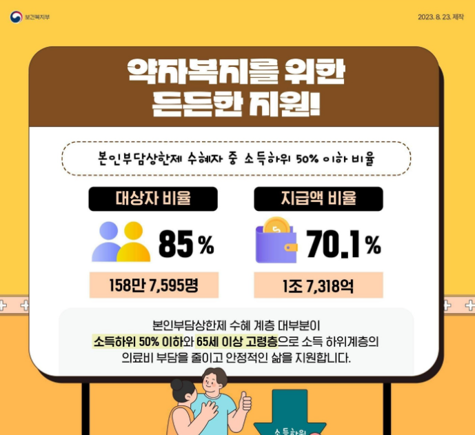 본인부담상한제는 의료비 부담을 줄이기 위해 도입된 제도로, 비급여와 선별급여를 제외한 의료비에 대해 건강보험 가입자가 부담하는 총액이 개인별 본인부담상한액(2023년 기준 87만 원에서 780만 원)을 초과할 경우 그 초과 금액을 돌려주는 제도입니다. 이번 지급 절차를 통해 201만 1,580명의 대상자가 약 2조 6,278억 원에 달하는 혜택을 받게 됩니다. 특히, 저소득층을 중심으로 많은 분들이 큰 혜택을 받을 수 있어, 본인부담상한제를 잘 활용하는 것이 중요합니다.