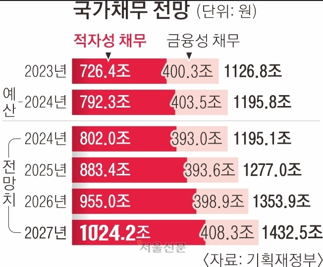 국민 세금으로 갚아야 할 적자성 채무, 내년 900조 원에 육박