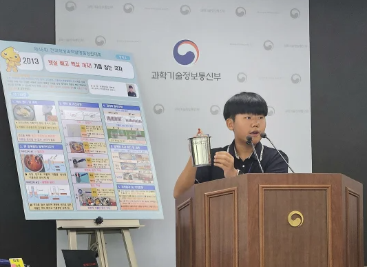 경상북도 포항 신광중학교 3학년 김태형 학생은 요리 시 발생하는 작은 불편함을 해결하기 위해 '뱃살 잡아 백살까지 기름 잡는 국자'를 발명했습니다. 이 발명품은 전국 학생과학발명품 경진대회에서 대통령상을 수상하며 큰 주목을 받았습니다. 김태형 학생이 이 발명을 하게 된 계기는 아버지의 건강을 걱정하면서 시작되었습니다. 아버지가 자주 드시는 기름진 음식이 건강에 해롭다는 사실을 깨달은 김태형 학생은 음식을 끓일 때 뜨는 기름을 효과적으로 제거할 방법을 고민하였고, 이를 통해 발명의 영감을 얻게 된 것입니다.