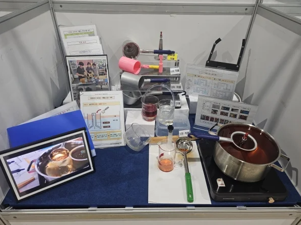 김태형 학생의 발명품이 독창적인 이유는 조선시대에 사용된 '계영배'의 원리를 응용했다는 점입니다. 계영배는 일정량 이상의 술을 따르게 되면 넘쳐 흘러버리는 구조로, 기압과 중력을 이용한 원리입니다. 김태형 학생은 이 원리를 국자에 적용하여, 기름과 국물을 쉽게 분리할 수 있는 혁신적인 방법을 고안했습니다. 국자에 국물과 기름이 함께 담기면 밀도 차에 의해 기름은 위로 뜨고 맑은 국물은 아래로 빠져나가는 구조입니다. 이로써 손쉽게 기름만 남겨 맑은 국물만 섭취할 수 있는 것이죠. 이 발명품은 요리 과정에서 매우 실용적이고 간편하게 사용할 수 있어, 주방에서의 혁신을 가져왔습니다.