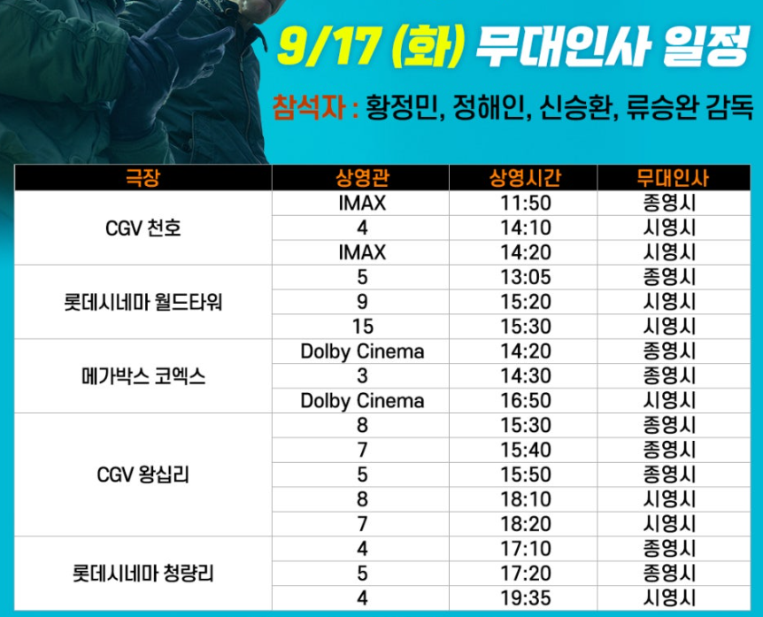 다. 주연 배우인 황정민, 정해인 등 주요 출연진들이 참여하는 무대인사는 서울을 비롯한 주요 도시에서 열릴 예정입니다. 팬들은 이를 통해 배우들과 직접 소통하고, 영화에 대한 다양한 이야기를 나눌 수 있는 기회를 가질 것입니다.