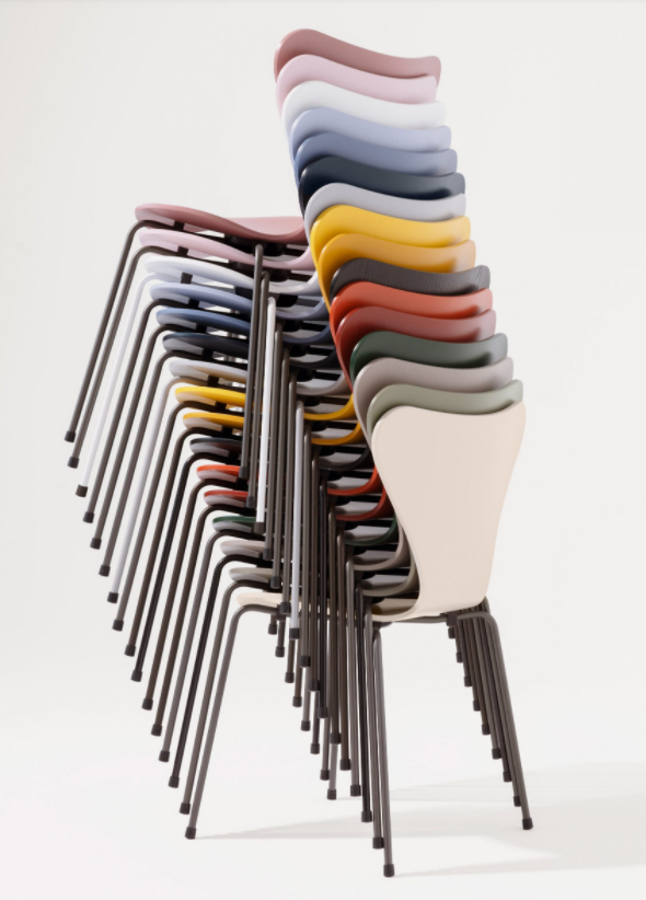 "Arne Jacobsen 스태킹 의자는 Fritz Hansen 디자인 DNA의 핵심을 나타냅니다."라고 브랜드는 말했습니다.