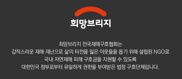 지속돌봄사업은 수해나 재난 후에도 경제적 이유로 어려움을 겪는 이들을 돕기 위한 사업입니다. 희망브리지는 재난 피해 정도 등을 기준으로 지원 지역을 선정하고, 해당 지자체의 추천과 실사를 통해 지원 대상을 결정합니다. 선정된 세대는 연 4회 방문을 통해 식료품, 의약품, 생활용품 등을 지원받게 됩니다.