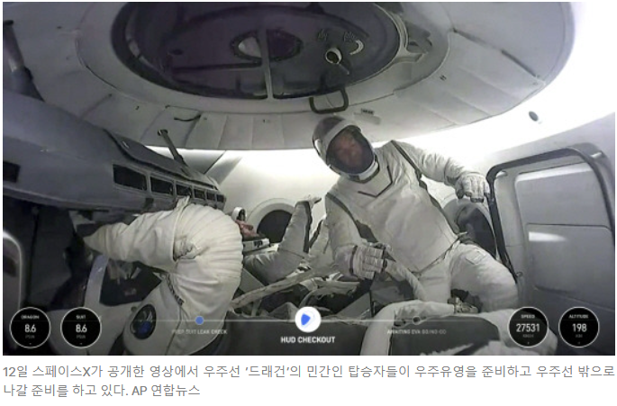 스페이스X는 오늘(12일) 전 세계 시청자들을 위해 우주 유영의 전체 절차를 약 2시간 동안 생중계했습니다. 이 과정에서 우주 유영을 직접 도전한 억만장자이자 항공기 조종사인 재러드 아이작먼은 그의 팀원들과 함께 우주선 '드래건'의 문을 열고 우주로 나아가는 놀라운 장면을 연출했습니다. 아이작먼의 도전은 스페이스X가 개발한 외부 활동 전용 우주복을 입고, 우주 캡슐 외부로 몸을 내밀며 시작되었습니다. 이 모든 과정은 약 730km 고도에서 시속 25,000~26,000km의 속도로 이동하는 우주선 위에서 이루어졌습니다.