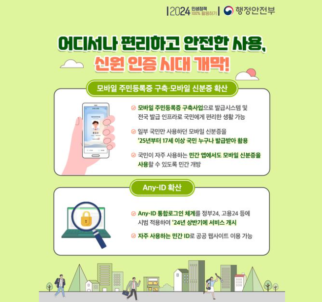 모바일 신분증은 디지털 시대에 맞춰 편리함과 보안성을 모두 갖춘 혁신적인 서비스입니다. 실물 신분증을 대체하면서도 법적인 효력을 갖추고 있어, 일상 생활에서 실물 신분증을 지니고 다닐 필요가 없어졌습니다. 특히 정부24를 통해 손쉽게 발급받을 수 있어, 많은 사용자들이 이 서비스를 활용하고 있습니다.