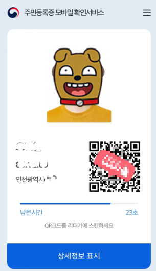 모든 절차가 완료되면, 신분증이 발급되며 화면에 QR 코드와 신분증 사진이 나타납니다. 이제 이 화면을 통해 언제든 신분을 확인하고 인증할 수 있습니다. 모바일 신분증은 주민등록증과 동일한 법적 효력을 가지고 있으므로, 실제 신분증을 제시해야 하는 상황에서 이 화면을 대신 사용할 수 있습니다.