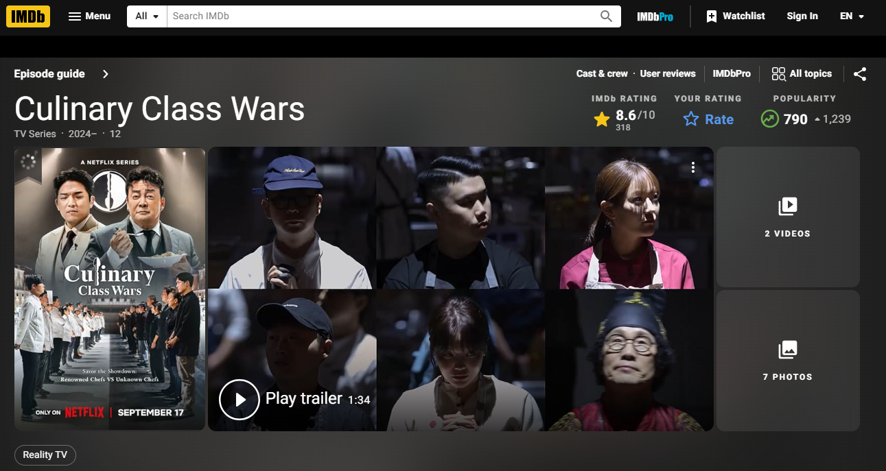 넷플릭스에서 방영된 '흑백요리사'는 공개 직후부터 넷플릭스 글로벌 TV 비영어 부분에서 1위를 차지하며 그 인기를 입증했습니다. '흑백요리사'는 총 12부작으로 제작되었으며, 현재 10회까지 공개된 상태입니다. 이 프로그램은 단순히 요리 대결을 넘어선 강력한 스토리텔링과 참가 셰프들의 뛰어난 실력이 조화를 이루며 해외 시청자들 사이에서도 많은 사랑을 받고 있습니다. IMDB에서 'Culinary Class Wars'라는 제목으로 방영 중인 이 프로그램은 8.6점의 높은 점수를 기록하고 있으며, 해외 리뷰에서도 찬사가 이어지고 있습니다.