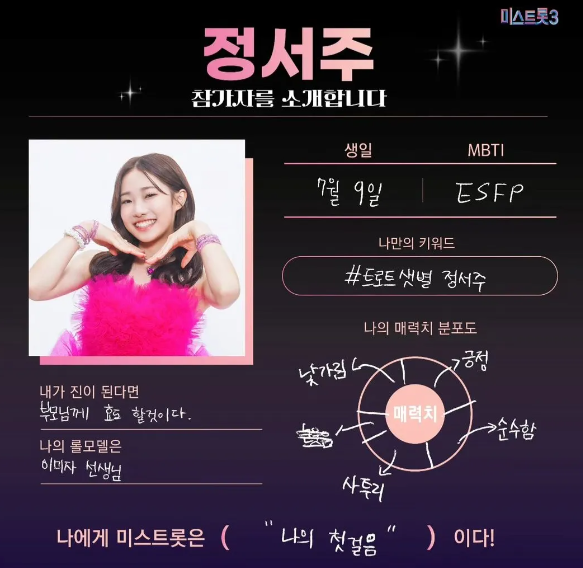 정서주가 트로트계에서 미스트롯3 진으로 자리잡고, 많은 사랑을 받고 있는 배경에는 그녀의 부모님, 특히 아버지 정원철 씨의 지지와 응원이 있었다는 점을 잊지 말아야 할 것입니다.