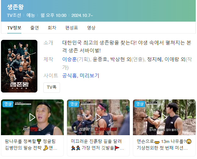 TV조선의 새 예능 프로그램 '생존왕' 첫 회 방영