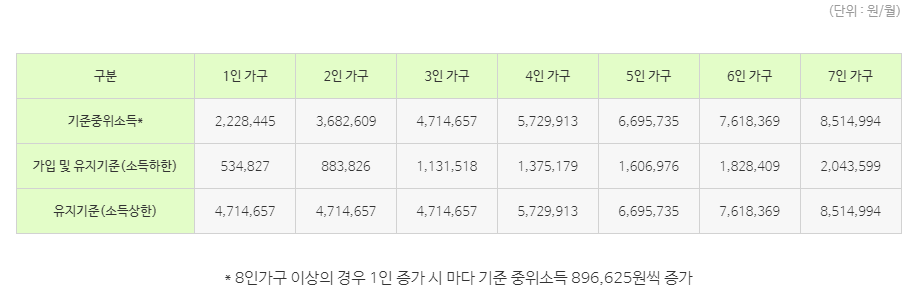 희망저축계좌 1의 지원 대상은 일하는 생계·의료 수급가구입니다. 이때, 가구 전체의 근로·사업소득이 기준 중위소득의 40% 이하인 가구만 신청이 가능합니다. 예를 들어, 2인 가구의 경우 가입 시점에는 월 소득이 88만원 이상이어야 하며, 가입 후에는 소득이 471만원 이하여야 지원 대상이 됩니다. 이 외에도 자활급여나 의료급여 특례자, 시설 수급가구도 지원이 가능합니다.