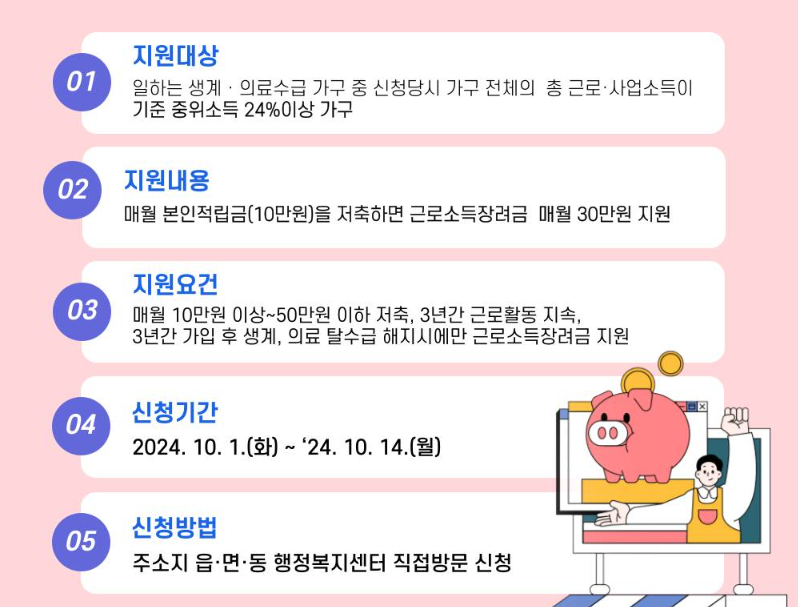 - 최종 적립금 수령: 3년간 저축을 유지하고, 탈수급 조건을 충족하면 최종 적립금과 이자를 수령할 수 있습니다.