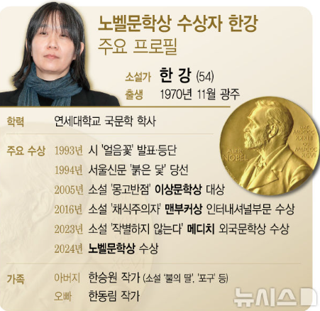 2024.10.11 - [이슈] - 2024 노벨 문학상! 한강의 작품과 인생 이야기(ft. 아버지, 남편, 가족)