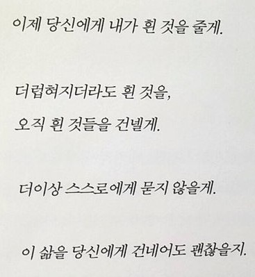 한강의 소설은 시적인 문체로 잘 알려져 있습니다. <흰> 또한 마찬가지로 한강의 감각적이고 섬세한 문체가 돋보이는 작품입니다. 한강의 문장은 짧고 간결하면서도 그 안에 깊은 의미를 담고 있습니다. 마치 시를 읽는 것 같은 느낌을 주는 이 소설은, 한강이 말하고자 하는 메시지를 은유적으로 전달하는 데 탁월한 역할을 합니다. 독자는 이 소설을 읽으며 한강이 그려낸 흰 세계 속에서 삶과 죽음의 경계를 느끼고, 이를 통해 인간의 존재에 대한 사유를 하게 됩니다.