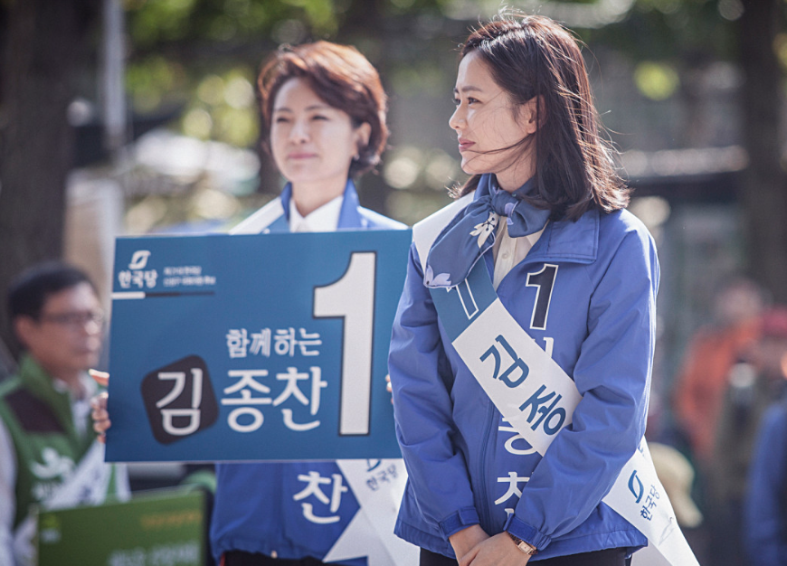 영화는 국회의원 후보 김종찬(김주혁)과 그의 아내 김연홍(손예진)의 이야기를 중심으로 시작됩니다. 김종찬은 경북 대산시 신성구에서 국회의원 선거에 출마하며, 가족과 함께 지지율을 끌어올리기 위해 분주하게 움직이고 있습니다. 그의 아내 김연홍은 남편의 선거를 돕기 위해 바쁘게 움직이고 있으며, 모든 것이 정치적으로 중요한 시기입니다.