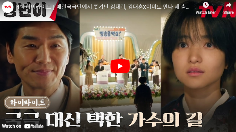 4회는 윤정년(김태리)이 국극단과 가수 사이에서 갈등하며 새로운 길을 선택하는 중요한 회차입니다.