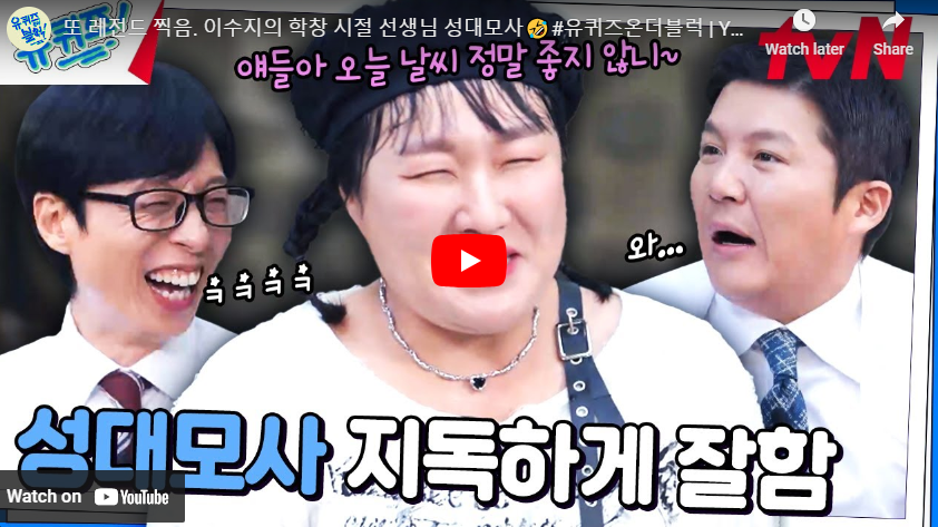 코미디언 이수지가 tvN 예능 프로그램 유 퀴즈 온 더 블럭(이하 유퀴즈)에 출연하며 유쾌한 입담과 진솔한 매력으로 다시 한번 시청자들의 마음을 사로잡았습니다.