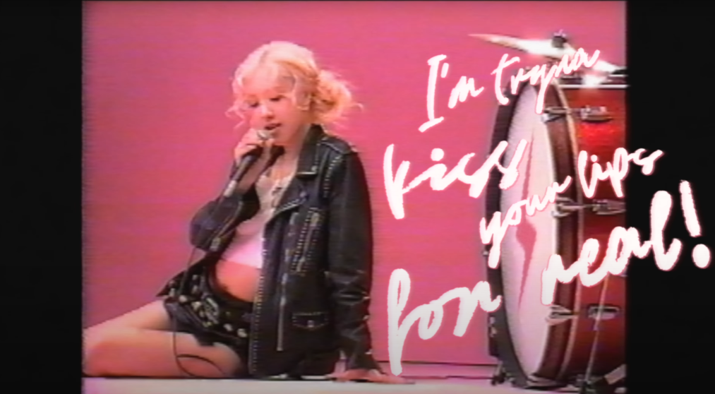 “Kissy face, kissy face, sent to your phone but, I’m trying to kiss your lips for real”