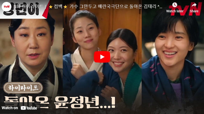 2024.10.22 - [리뷰] - 정년이 3회, 4회 : 채공선 정체?! (ft.김태리, 신예은 판소리)