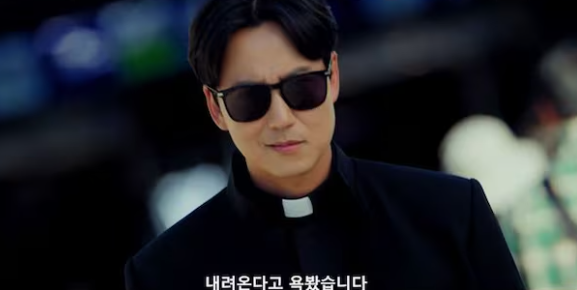 김해일은 전직 국가정보원 대테러팀 요원이었으나, 어린이 폭사 사건의 비극적 목격자로 PTSD를 겪으며 알코올에 의존하던 시절을 보내고, 이영준 신부와의 만남 이후 사제가 됩니다.