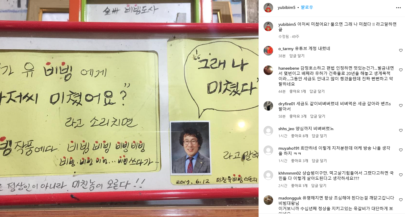 유비빔은 방송 이후 갑작스럽게 주목받으면서 자신과 가게에 대한 민원과 불법 영업에 대한 경고가 이어졌습니다.