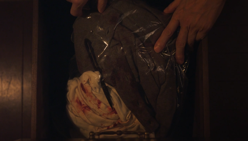 이 장면은 그녀의 복잡한 심리 상태와 함께, 가족의 죽음에 얽힌 진실을 파헤치려는 그녀의 집념을 강하게 드러냅니다.
