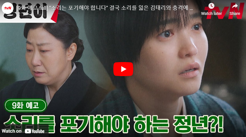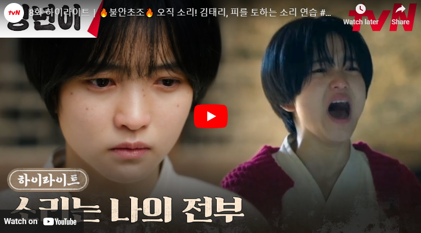 드라마 '정년이' 8화에서 윤정년은 국극단 오디션을 준비하며 무리한 훈련으로 인해 목소리를 잃을 위기에 처하게 됩니다.