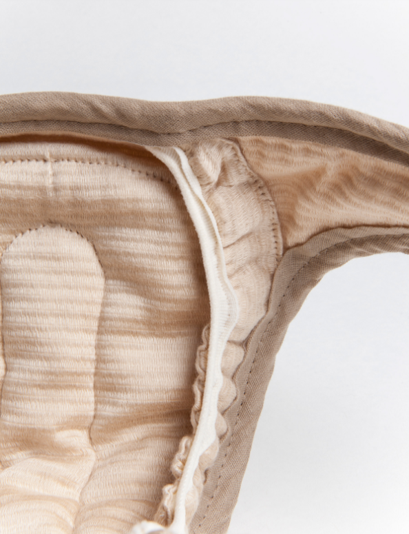 그녀가 독일 섬유 및 섬유 연구소 (DITF)와의 협력을 통해 섬유를 실험하면서 개발 된 기저귀의 최소한의 모습.
