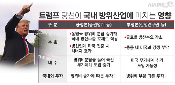 이로 인해 한화에어로스페이스, LIG넥스원과 같은 국내 방산 기업들이 트럼프의 정책에 영향을 받아 성장 가능성을 높이고 있습니다.
