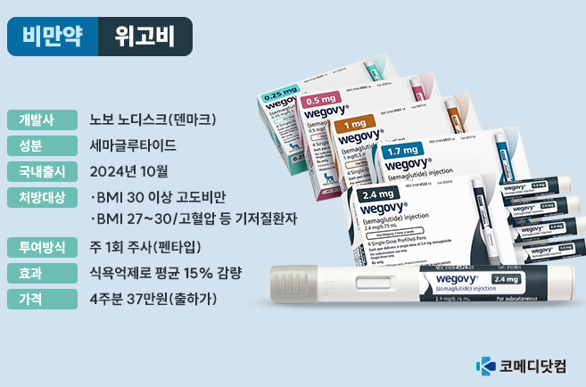 비만 치료제인 위고비(Wegovy)는 BMI 수치가 높은 성인에게 체중 감량을 돕기 위해 사용되는 주사제입니다.
