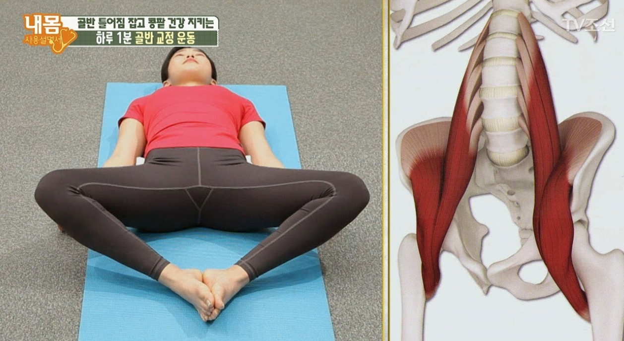 - 허리를 곧게 펴고 천천히 몸을 앞으로 숙여 장요근을 자극합니다.