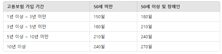 퇴직 당시 연령과 고용보험 가입 기간에 따라 최소 120일에서 최대 270일까지 지급됩니다.