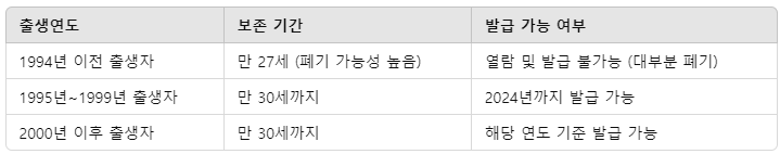 - 1995년 이후 출생자는 보존 기간이 남아 있으니 서둘러 발급받는 것이 좋습니다.