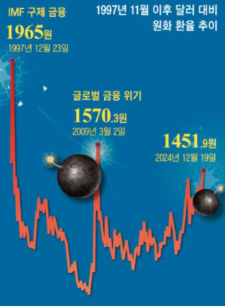 약 한 달 뒤인 12월 23일, 원달러 환율은 순간 최고치인 1달러당 1,995원을 기록했습니다.