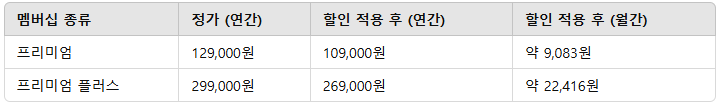 실제로는 혜택코드 대신 링크를 통해 추가 할인을 받을 수 있는데요, 프리미엄은 2만원, 프리미엄 플러스 얼리버드는 7만원, 일반 혜택은 3만원 받을 수 있습니다.