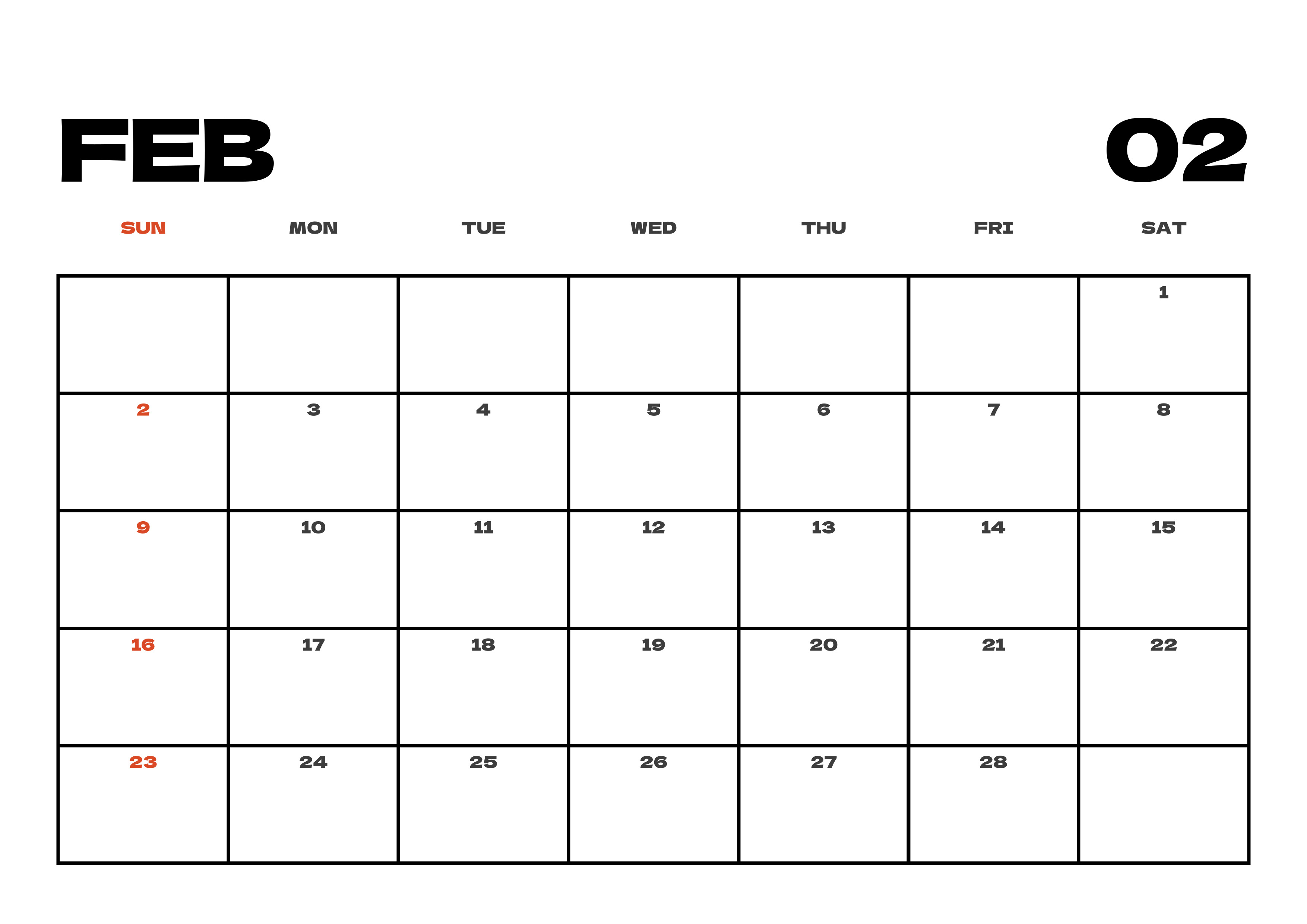 2025년 2월 달력