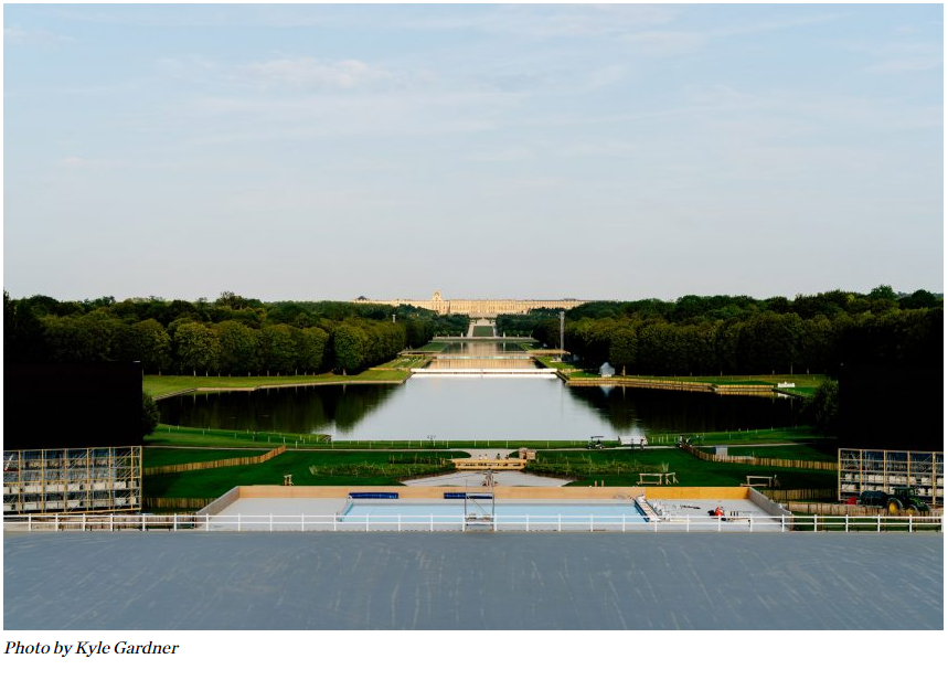 - 1632년에 루이 14세의 궁정으로 지어진 베르사유 궁전은 1979년 프랑스 최초로 유네스코 세계유산으로 지정되었습니다. 이번 올림픽에서는 승마와 근대 5종 경기를 주최합니다. 그랑 운하 서쪽에 위치한 에투알 로얄 광장에 임시 야외 경기장이 설치되었으며, 이 경기장에서 승마 점프와 마장마술 경기가 열립니다. 크로스 컨트리 섹션은 그랑 운하를 따라 진행되며, 베르사유 궁전은 근대 5종의 다섯 종목도 주최할 예정입니다. .