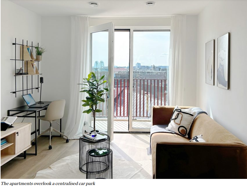 Miller 아파트 건물은 Martens Willems & Humblé Architecten가 이전에 완성한 두 개의 낮은 사회 주택 블록과 맞닿아 있으며, 세 가지 형태는 중심에 마치 안뜰 같은 주차 공간을 둘러싸고 있습니다.