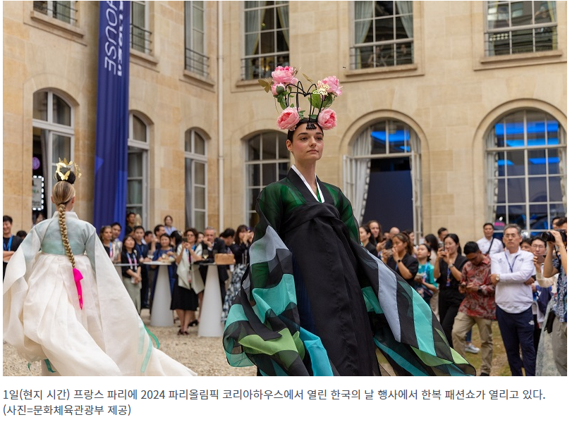 이번 패션쇼는 ‘한국의 날’ 사전 행사로 기획되어, 파리올림픽에 참가한 한국 선수단의 활약을 축하하고 응원하는 의미도 담고 있었습니다. 1900년 파리 만국박람회에 참가했던 소녀가 2024년 파리올림픽 코리아하우스를 방문하는 상상을 주제로 한 이번 행사는 과거와 현재를 이어주는 감동적인 스토리를 통해 한국과 파리의 연결고리를 더욱 강화했습니다.